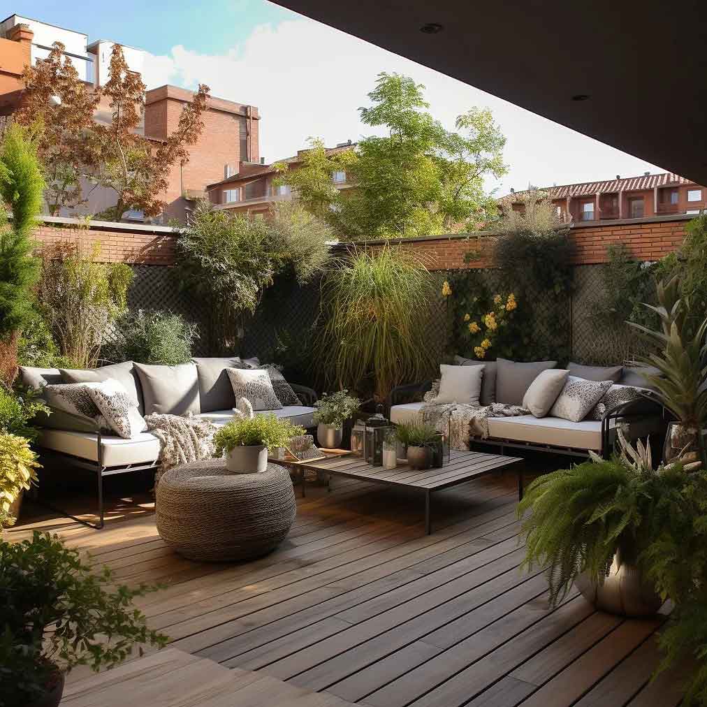 Ya sea que estés buscando crear un rincón de descanso tranquilo o un espacio para la sociabilización al aire libre, trabajaremos contigo para dar vida a tus sueños en la terraza de tu apartamento o vivienda en la ciudad.